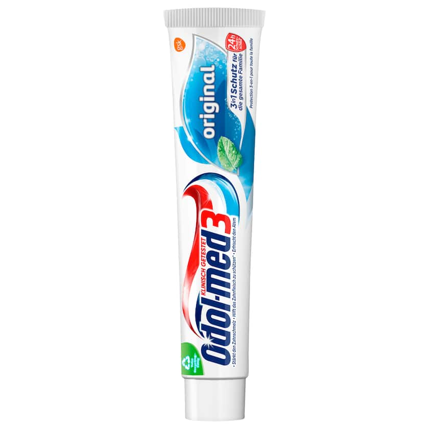 يقدم معجون الأسنان الأصلي Odol-med3 الذي تم اختباره سريريًا مع حماية من حمض السكر* حماية ثلاثية ضد: تسوس الأسنان ومشاكل اللثة** وتكوين الجير.