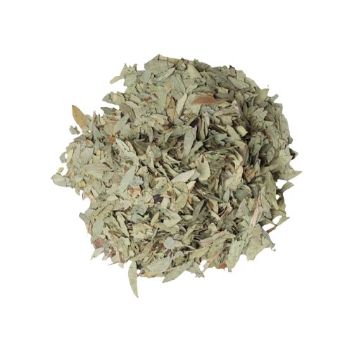 Getrocknete ägyptische Sennesblätter, papierartige Stücke sichtbar.