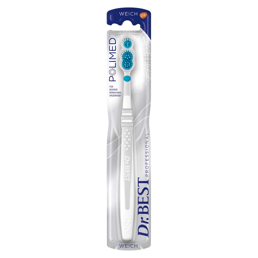 Die Dr BEST Polimed Handzahnbürste ermöglicht eine bis zu 49% bessere Reinigungsleistung* an schwer erreichbaren Stellen durch ein spezielles kreisrundes Bürstenkopfdesign mit bis zu 2x mehr Filamentbündeln** und einem wellenartigen Bürstenschnitt, der sich an die Kontur Ihrer Zähne anpassen kann**. Zusätzlich ermöglicht das Kugelgelenk einen flexiblen Bürstenkopf für eine optimale Zahnreihenanpassung und die Flexzone gibt bei zu starkem Druck nach und hilft so, Ihr Zahnfleisch vor Verletzungen zu schützen. *In Labortests **Verglichen mit einer herkömmlichen Zahnbürste mit Flachschnitt